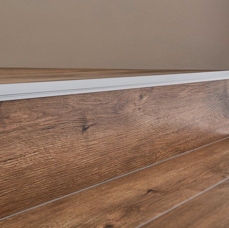 Het zichtbare deel van bovenaf is 8 mm en de zichtbare rand aan de zijkant van de trede is 13 mm. Bij installatie op een zwevende vloer adviseren wij het profiel te verlijmen. Dit verstevigt de constructie.