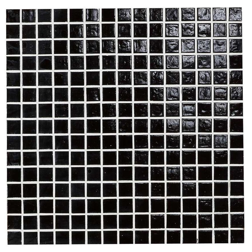 Het glinsterende effect dat de glaspasta geeft, is prachtig op deze voorbeelden van glanzend zwarte mozaïektegels.