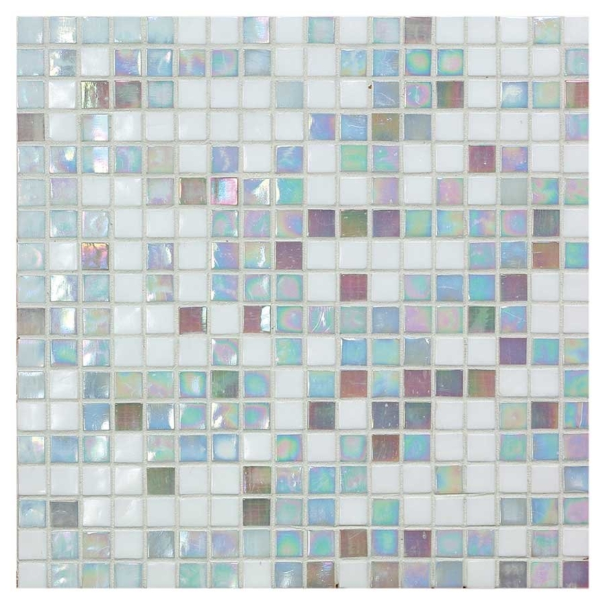De witte en turquoiseblauwe mozaïektegels vallen op door hun verbluffende combinatie, met een explosie van vaag gelijkende kleuren en tinten. Het gekozen materiaal is waterbestendig, waardoor ze geschikt zijn voor installatie in ruimtes die vaak vochtig zijn.