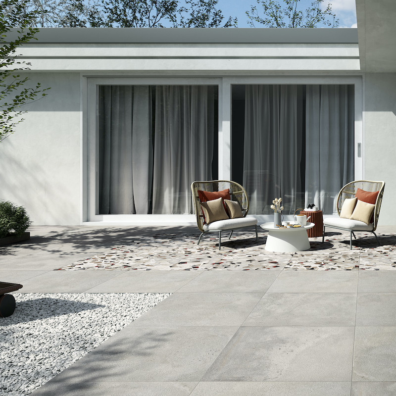 Ontdek de I Cocci 2.0 20mm buitentegel van onze Italiaanse partner Fioranese, die esthetiek en duurzaamheid harmonieus combineert. Geïnspireerd op vintage fragmenten, brengt deze tegel authentieke charme in uw buitenruimtes. Verkrijgbaar in 90 x 90 cm.