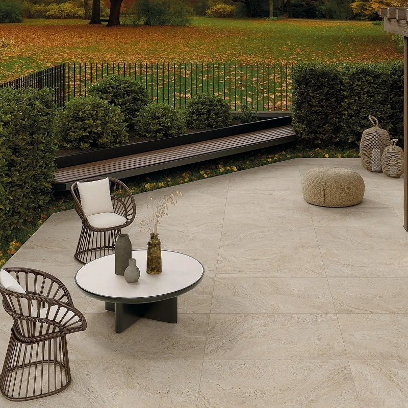 De nieuwe Unique Travertine 2.0 Minimal Cream-collectie biedt een elegante interpretatie van natuurlijk travertijn. Ideaal voor uw buitenruimte, met een strak design en een verfijnd oppervlak. Duurzaam en tijdloos, past het harmonieus in uw buitenruimte en combineert het esthetiek met uitzonderlijke duurzaamheid.