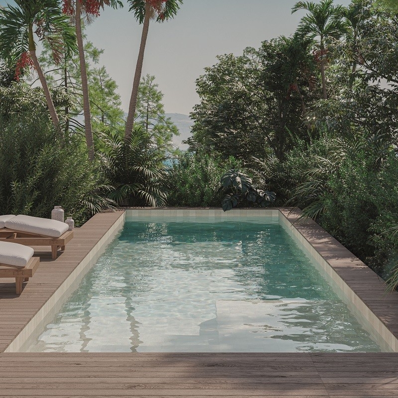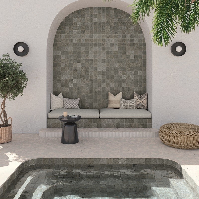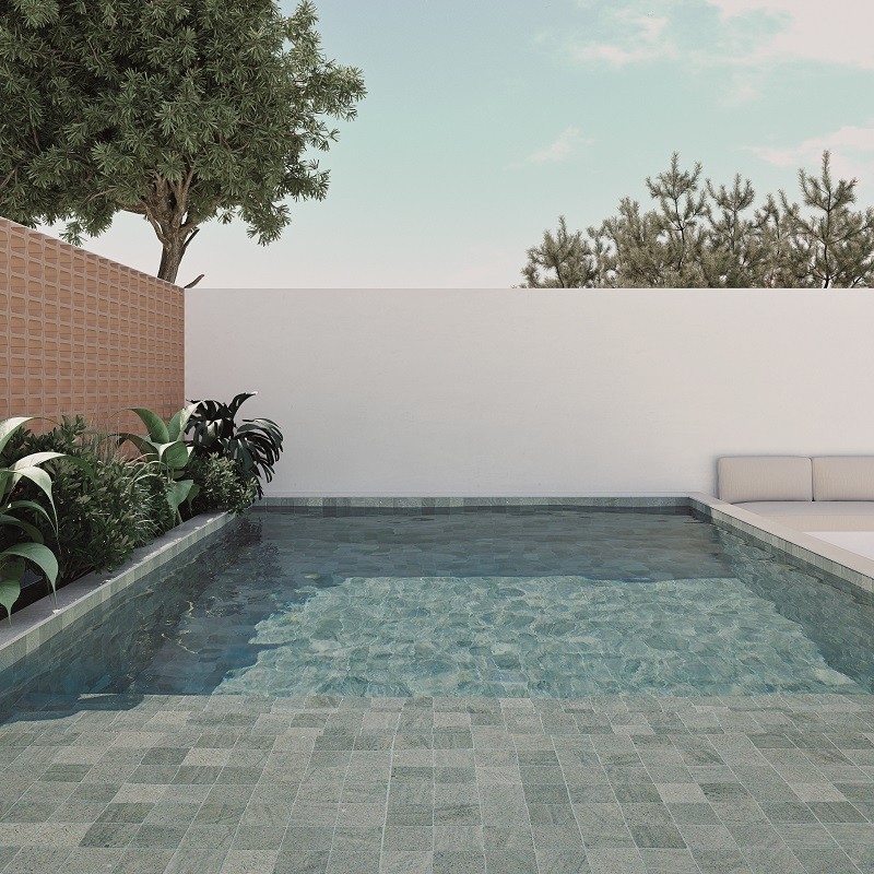 Het formaat, ideaal voor uw zwembad, stelt u in staat een elegant en verfijnd mozaïek te creëren. Speel met contrasten en harmonieën om een ruimte tot leven te brengen die bij u past, een weerspiegeling van uw persoonlijkheid en uw ambities.