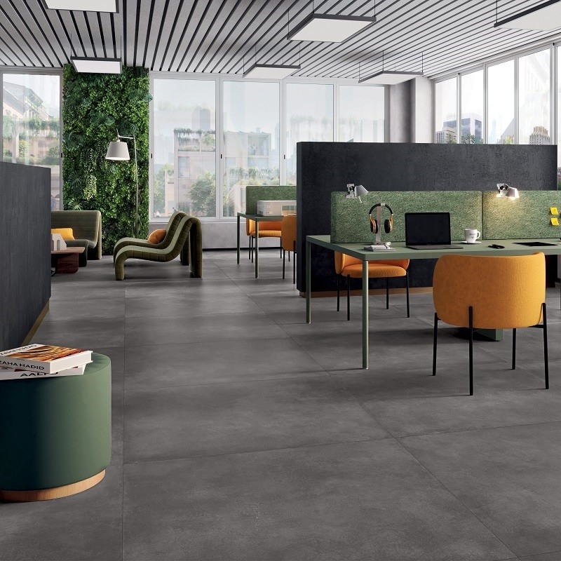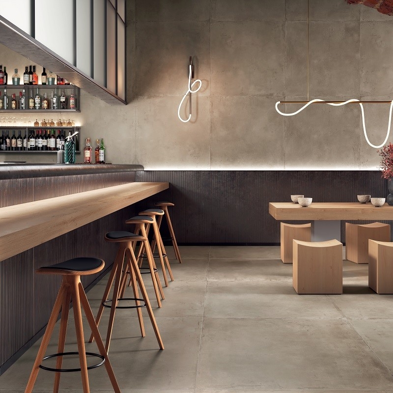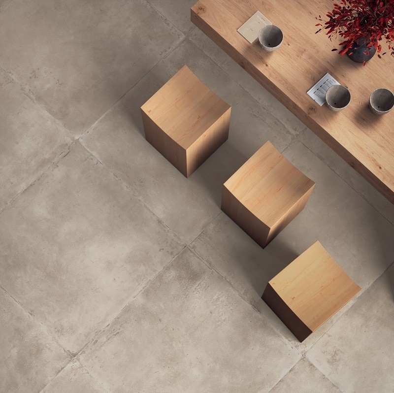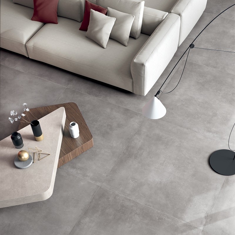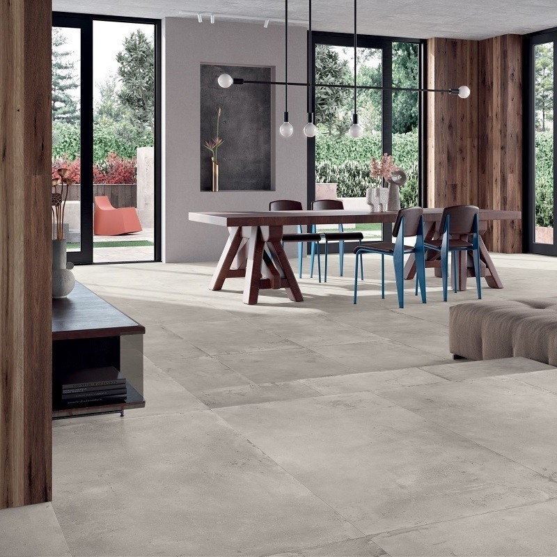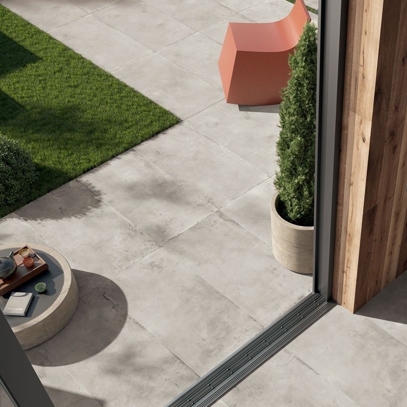 Tot slot biedt deze tegel met betonlook een totaalbeeld, waardoor u binnen- en buitenruimtes met één oppervlak kunt verbinden.
