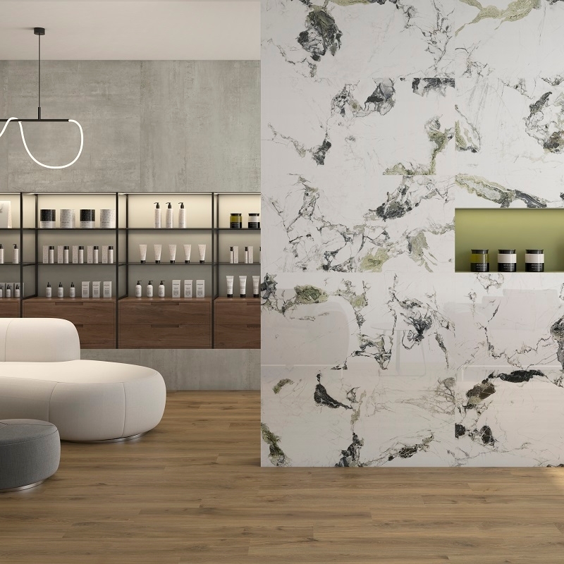 Met hun royale afmetingen reproduceert de Haru-collectie getrouw de afmetingen van traditionele parketvloeren, wat zorgt voor een ruimtelijk perspectief en een gevoel van harmonie. De gerectificeerde afwerking zorgt voor discrete voegen en een uniform oppervlak, voor een onberispelijke en eigentijdse look.