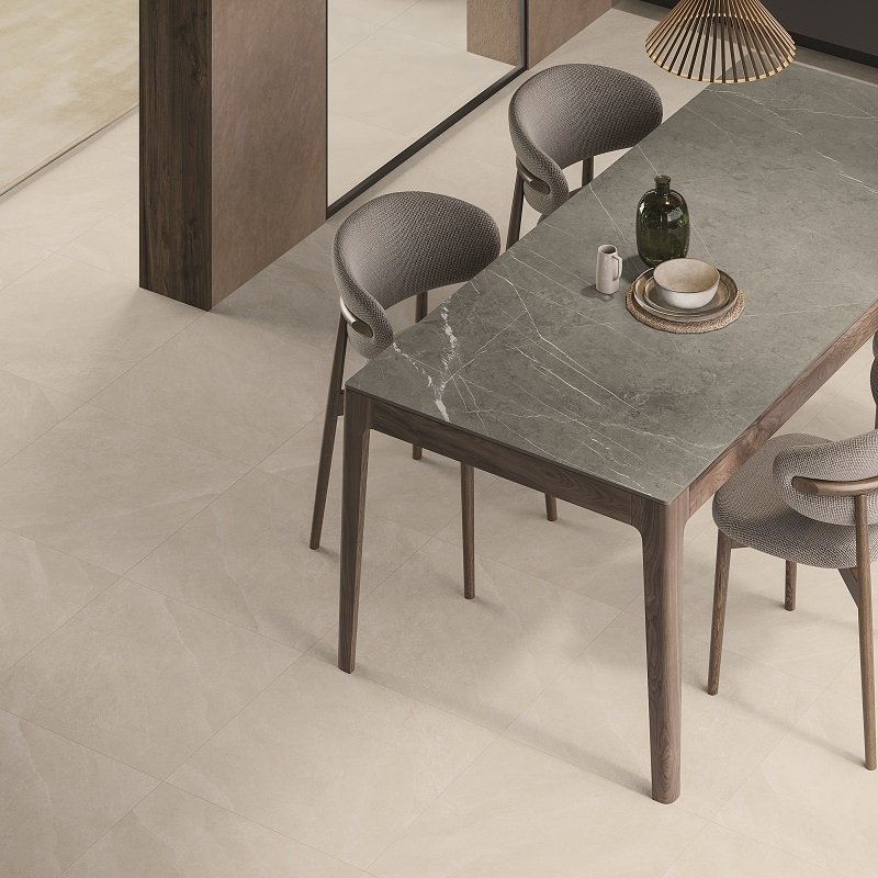 De Era-collectie belichaamt de rauwe elegantie van natuursteen, opnieuw geïnterpreteerd met de moderniteit en functionaliteit van porselein. Elke tegel, met zijn matte afwerking, onthult onregelmatige aderen en subtiele nuances, wat zorgt voor een oppervlak dat zowel rijk als rustgevend is.