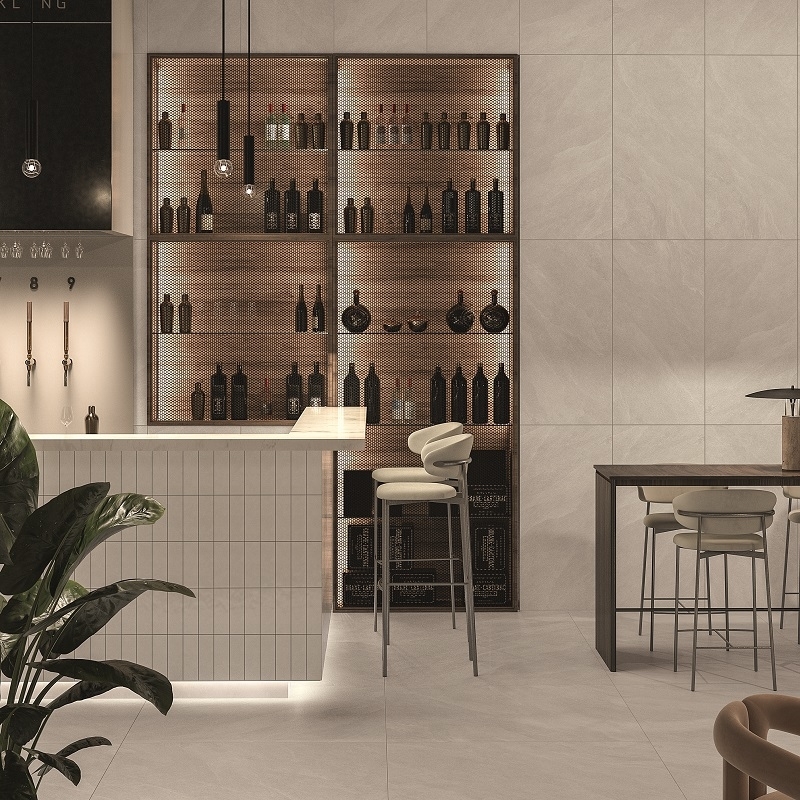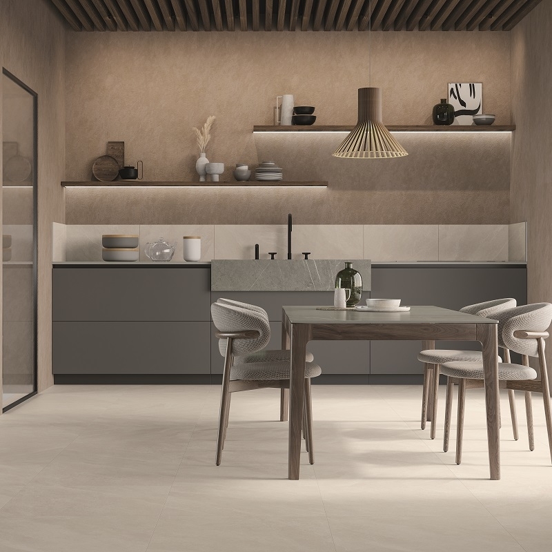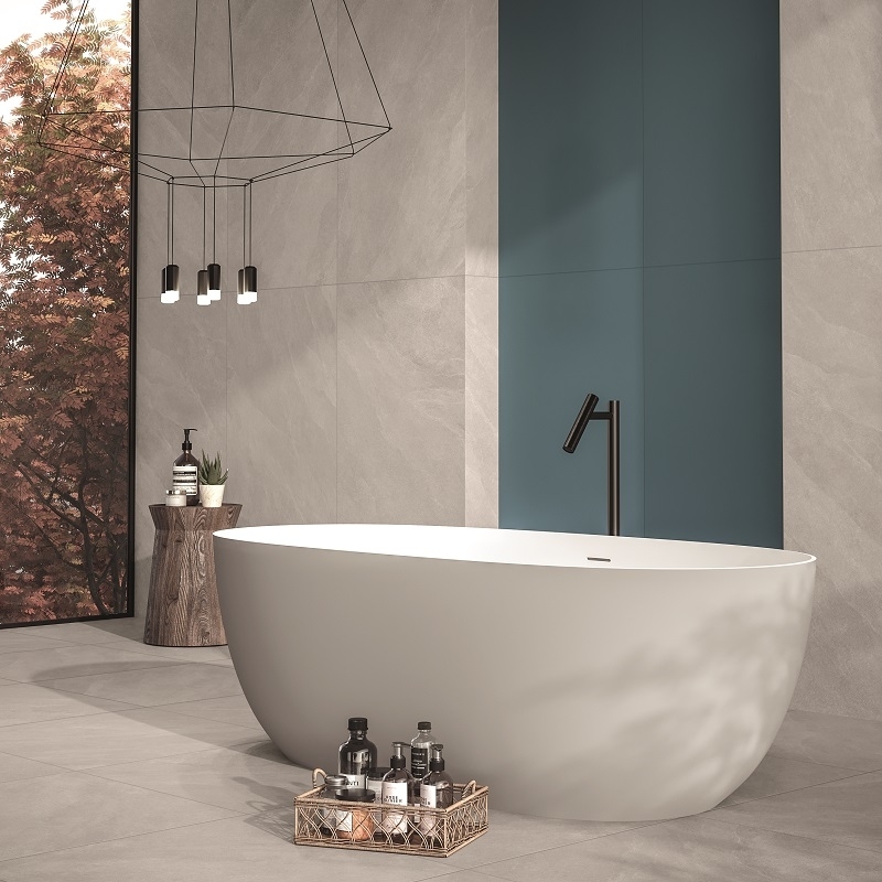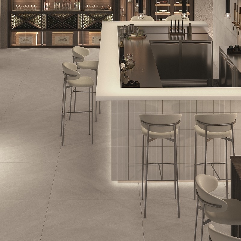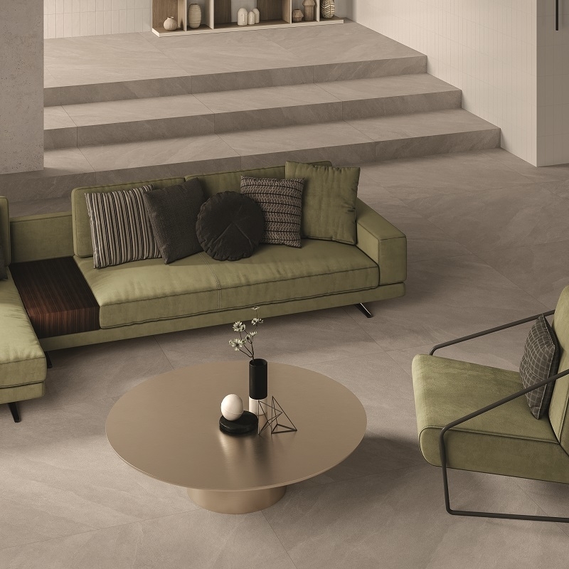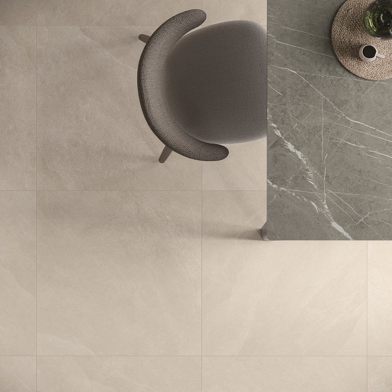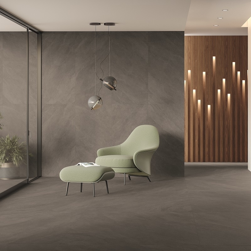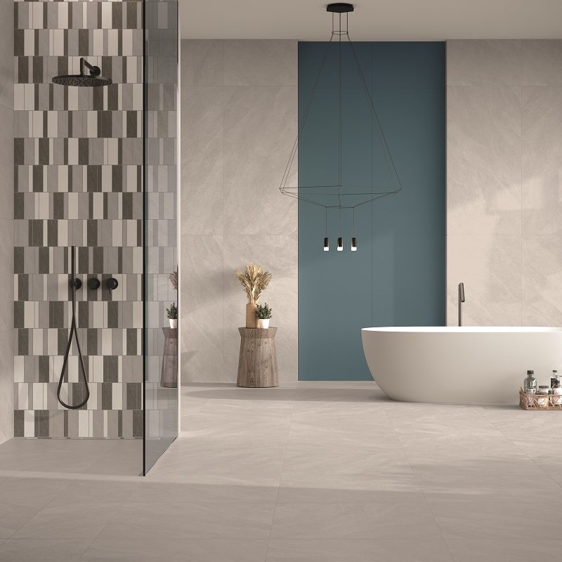 De Era-collectie belichaamt de rauwe elegantie van natuursteen, opnieuw geïnterpreteerd met de moderniteit en functionaliteit van porselein. Elke tegel, met zijn matte afwerking, onthult onregelmatige aderen en subtiele nuances, wat zorgt voor een oppervlak dat zowel rijk als rustgevend is.