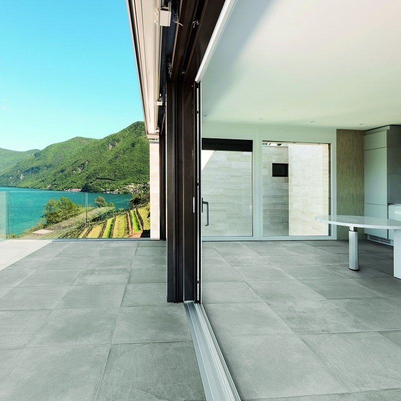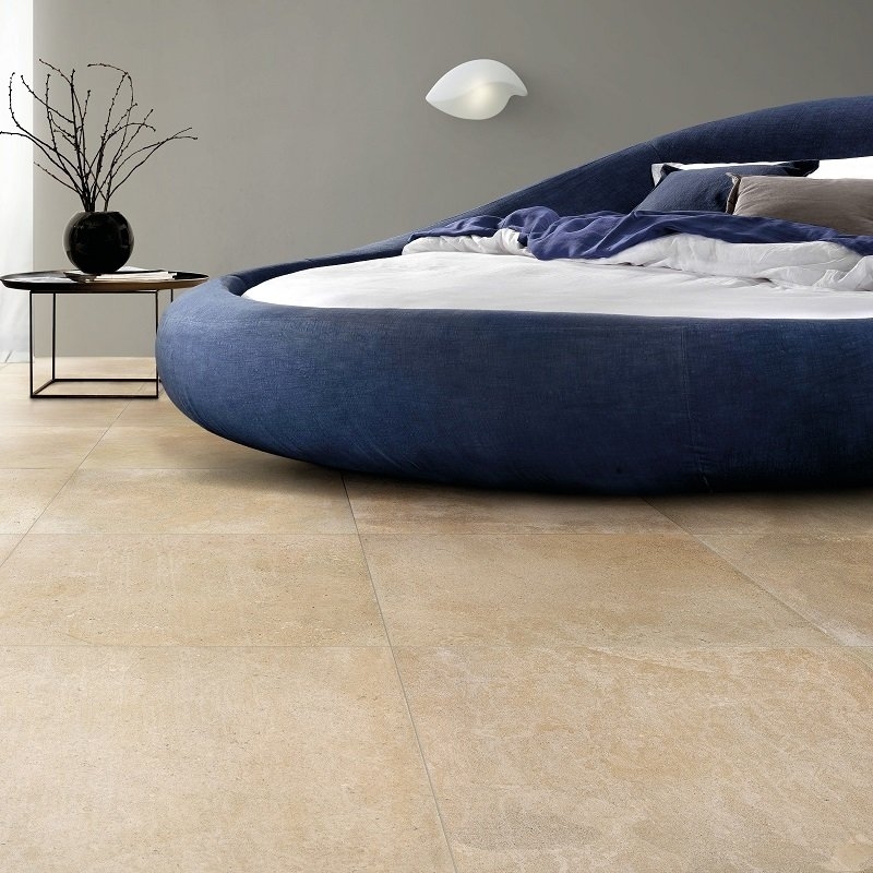 Het matte model Pietra Baugé van Casalgrande Padana verleidt met zijn ingetogen en verfijnde natuursteenuitstraling.
