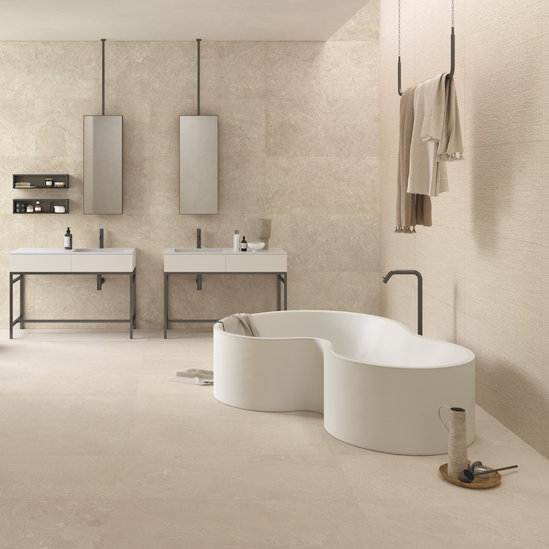 Deze tegel met steeneffect is verkrijgbaar in vier verschillende formaten, zodat u naadloze, samenhangende ruimtes kunt creëren door hem op muren en vloeren te plaatsen. Zoek niet verder dan Ma Pierre voor een elegant en tijdloos interieur.