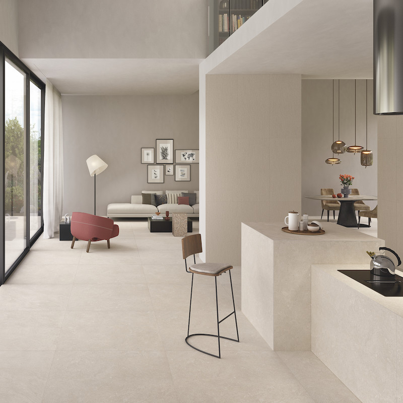 De zachte, matte afwerking is een ingetogen en essentiële keuze voor vloeren en wanden. Het biedt een ingetogen en afgemeten elegantie en vormt een perfecte achtergrond voor eigentijds meubilair.
