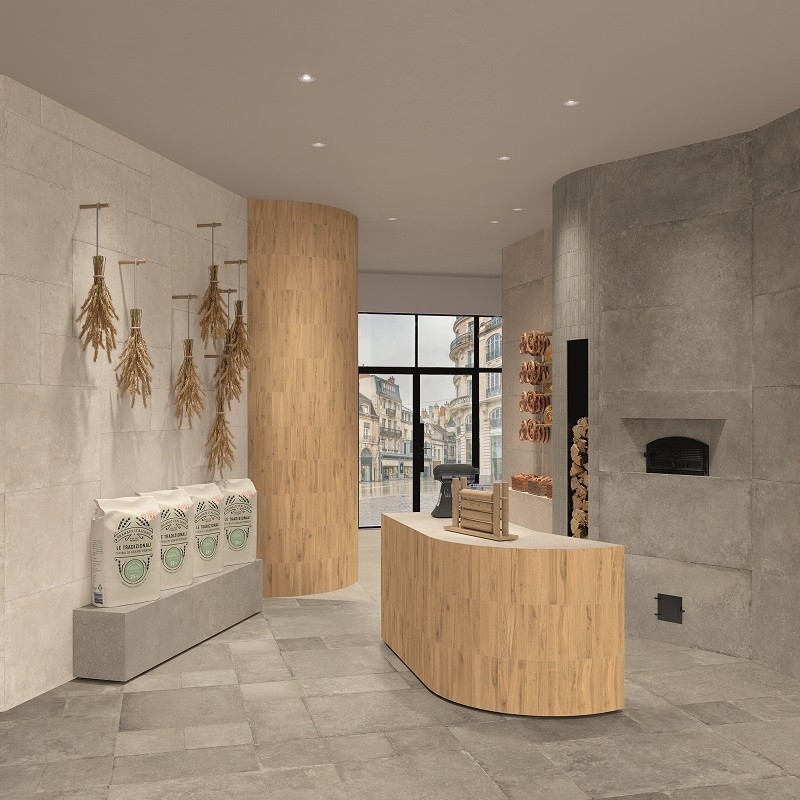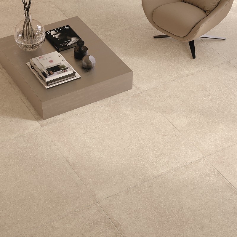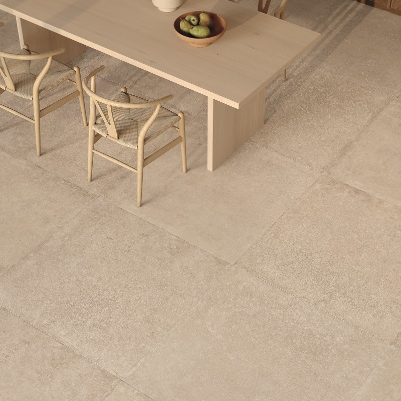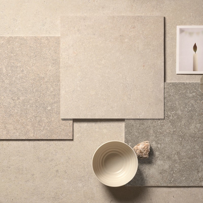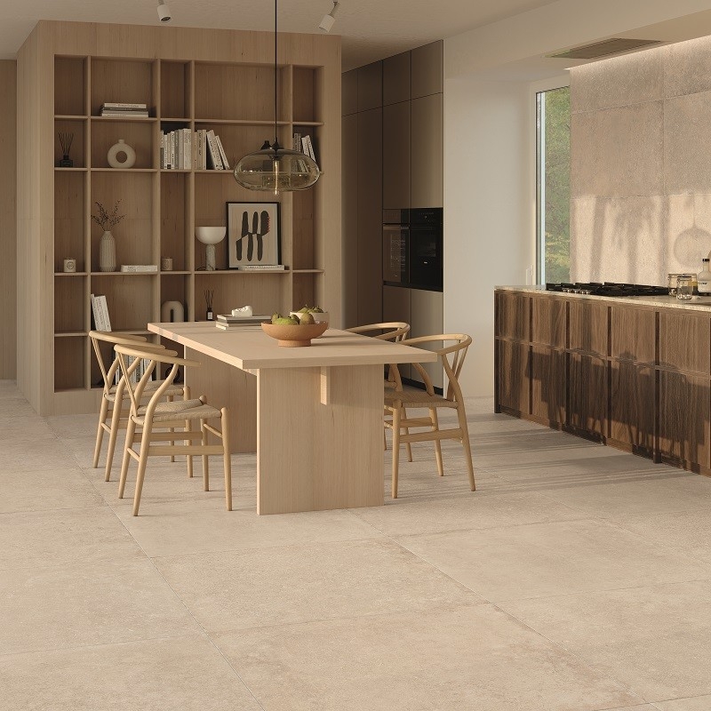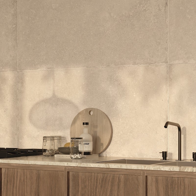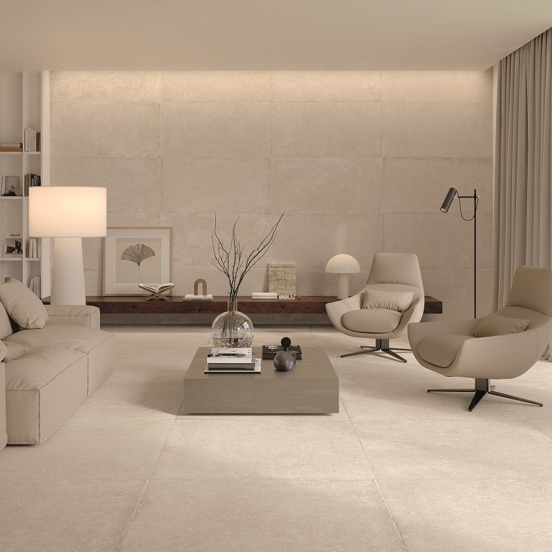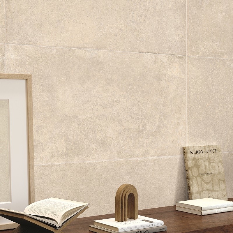 Met behulp van geavanceerde technologie wordt de authentieke uitstraling van natuursteen natuurgetrouw nagebootst, met al zijn imperfecties en kleurvariaties. Warme, omhullende tinten zoals zand en ivoor creëren een warme en gastvrije sfeer.