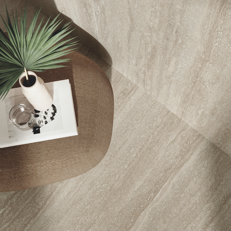 Ontdek Pietra Tiburtina, een collectie die de rauwe en elegante essentie van steen vastlegt. De Vein Touch-afwerking versterkt texturen en nuances, en elke tegel brengt een vleugje authenticiteit en karakter in uw ruimte.