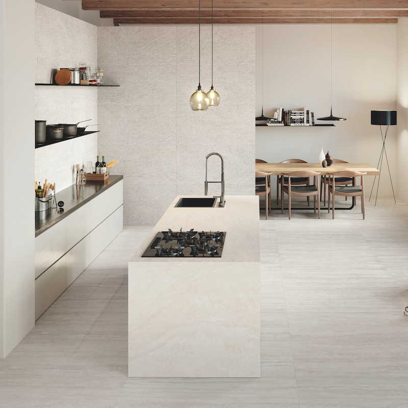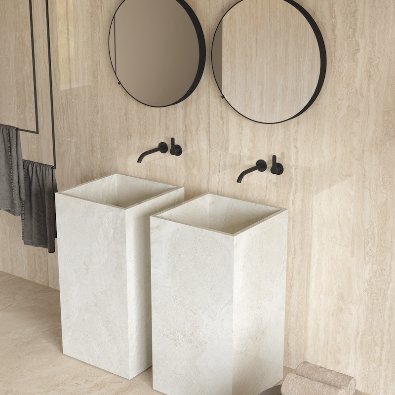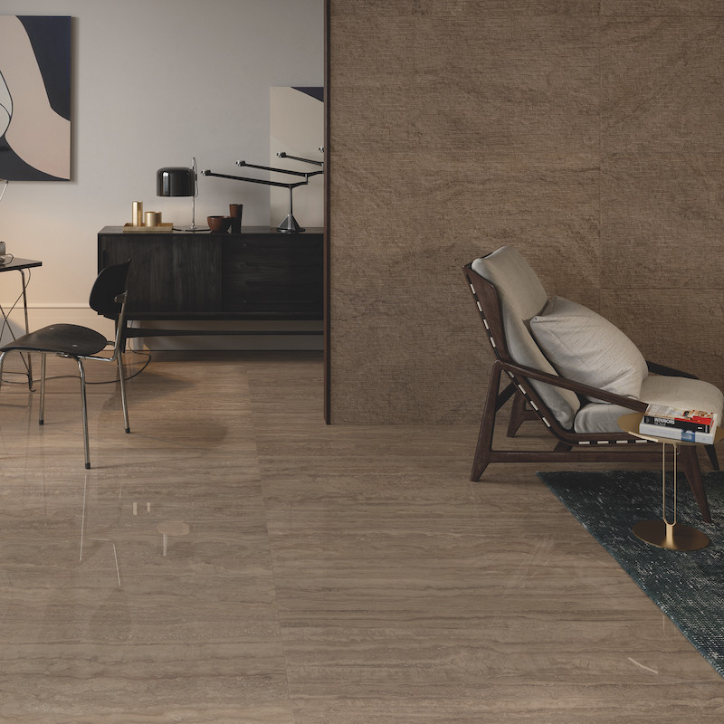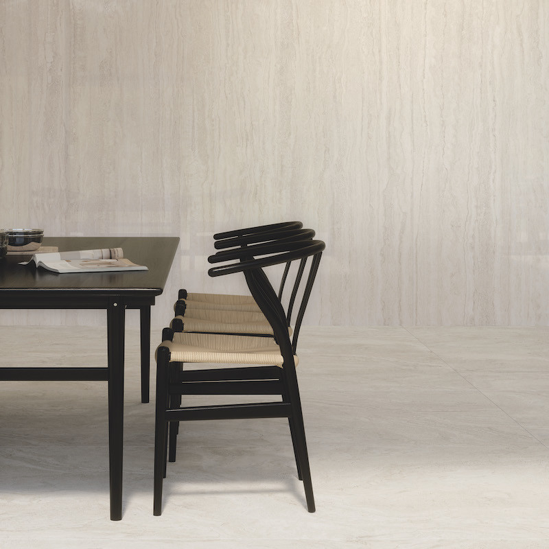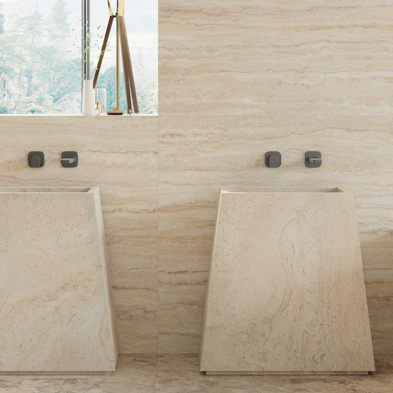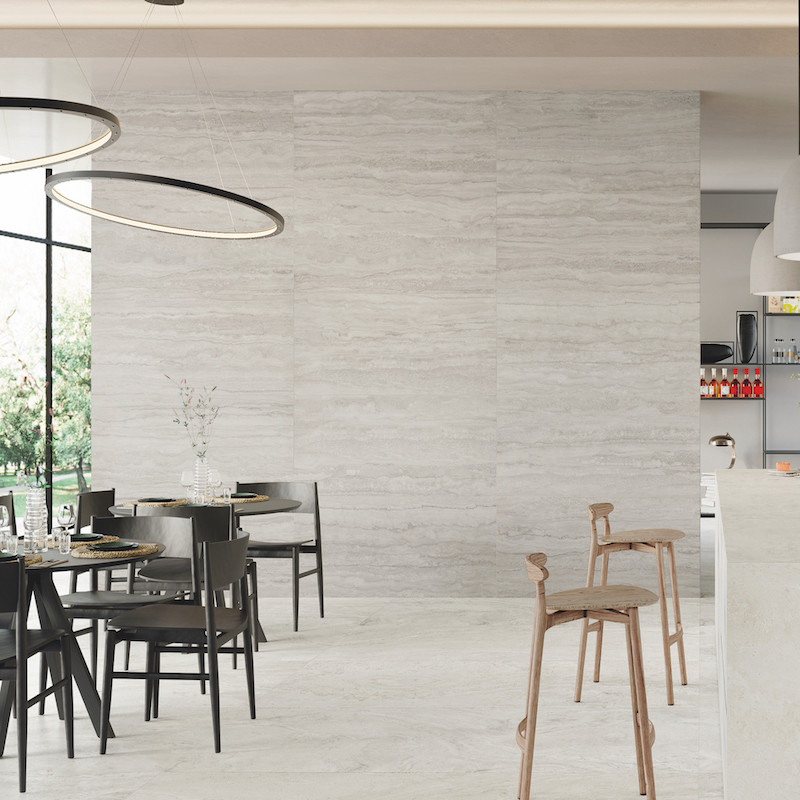 Deze tegel met travertijneffect heeft een look die meer doet denken aan kalksteen. Hij is al eeuwenlang populair en maakt vandaag de dag een comeback in de wereld van decoratie.