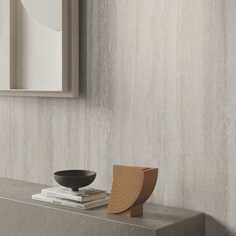 Goed om te weten: voor een perfecte visuele continuïteit kunt u de Pietra Tiburtina XXL-collectie combineren met versie 2.0 voor buitengebruik en de Pietra Tiburtina-collectie voor de meer gangbare afmetingen. Deze vindt u ook op onze website.
