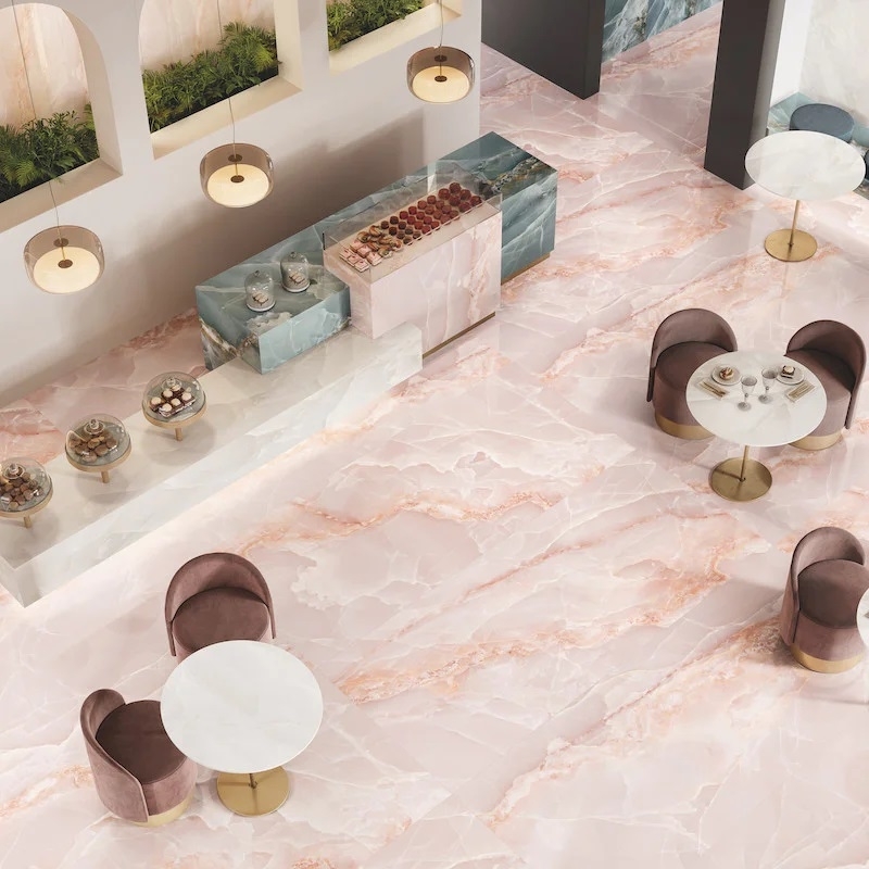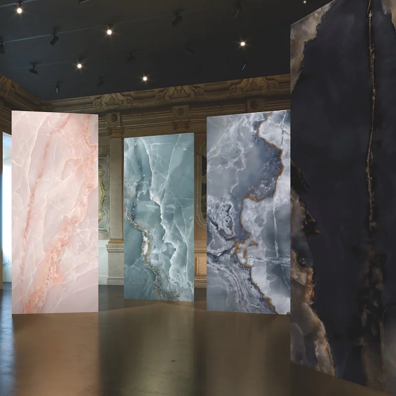 De Tele di Marmo Onyx-collectie is uitgebreid met een XXL-versie, een verfijnde interpretatie van natuursteen onyx. Verkrijgbaar in grote platen van 120 x 278 cm met een dikte van 6,5 mm, biedt deze bekleding een luxueuze, eigentijdse esthetiek, ideaal voor ambitieuze architectuurprojecten.