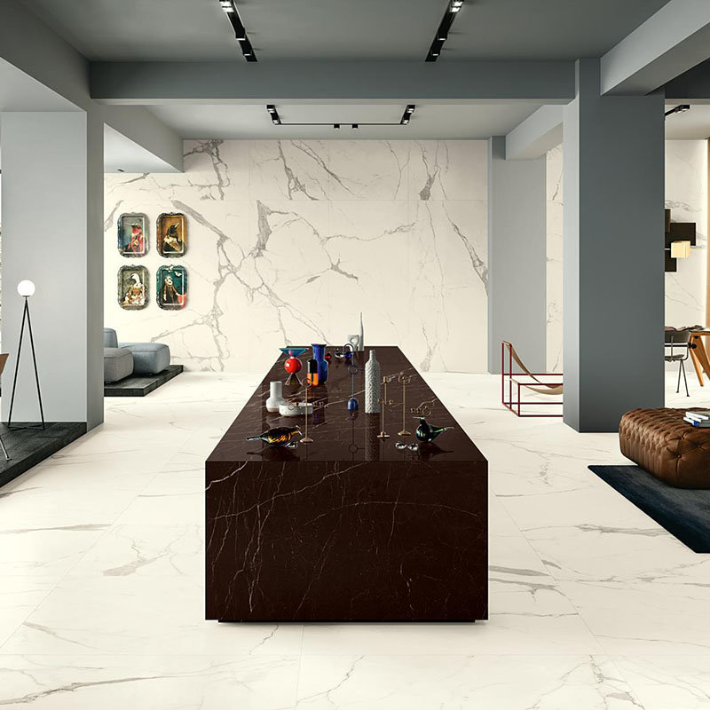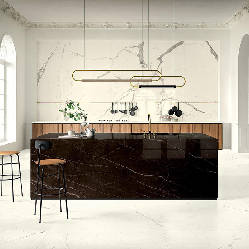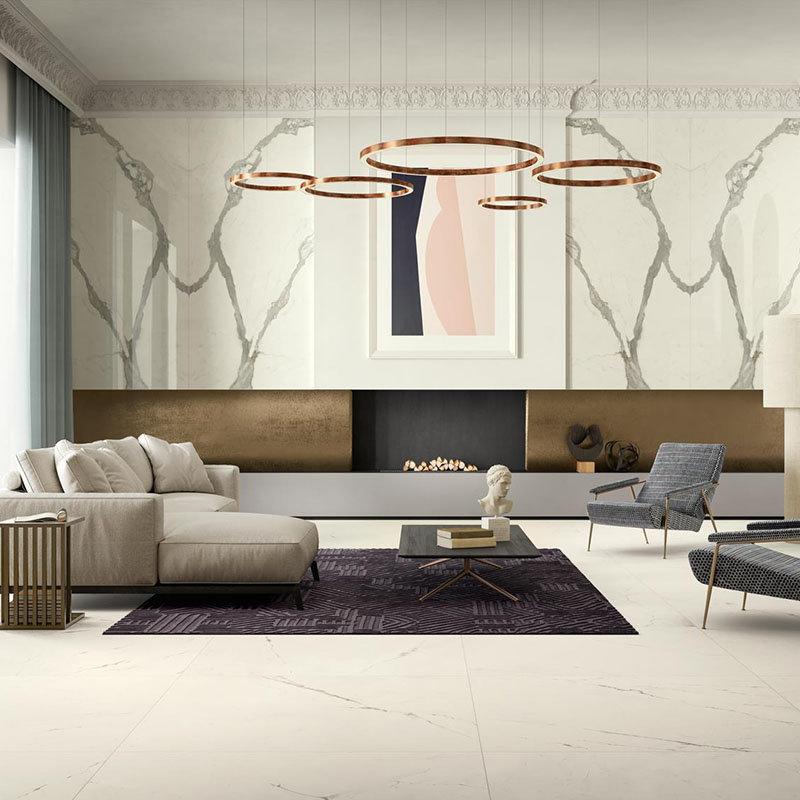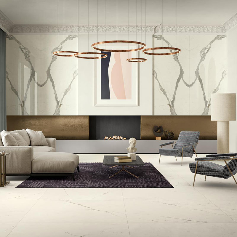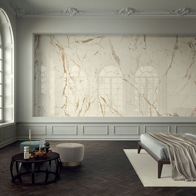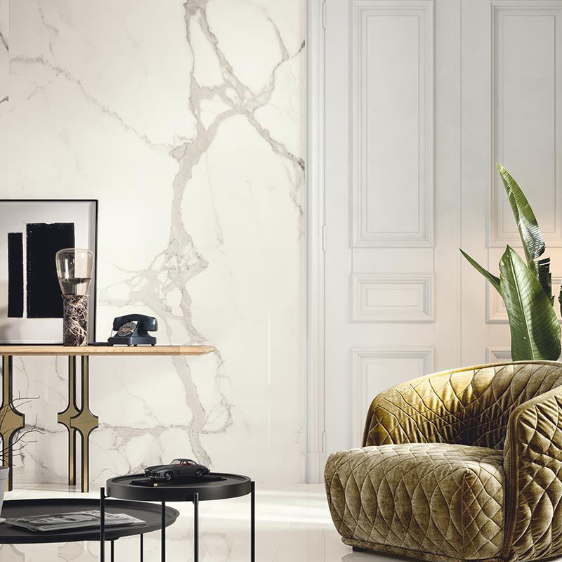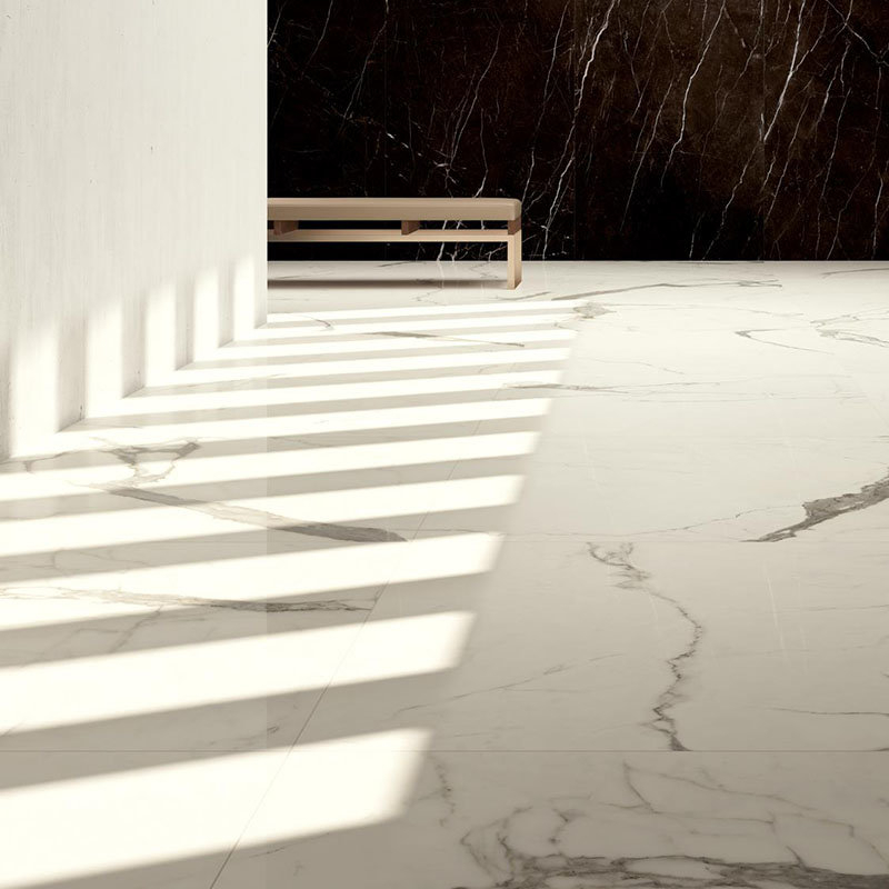 De platen van 278x120 cm onthullen subtiele patronen, lichte aders en discrete tinten die de harmonie en diepte van de meest kostbare natuursteen oproepen. Geïnspireerd door klassieke esthetiek, roept deze collectie de strengheid en puurheid van renaissancesculpturen op, waarbij elk detail een teken van verfijning wordt.