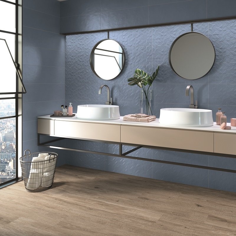 Leg de tegels met Klen tegels in dezelfde kleur en maat, deze geheel gladde tegel zal perfect passen bij de Gamy wandtegels.
