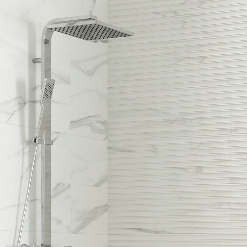 Deze eenvoudige en eenvoudige tegel met wit marmereffect heeft patronen die echt origineel zijn. Met lichte, fijne grijze aderen en 3D-achtige reliëflijnen zal hij u vanaf het moment dat u de eerste tegel legt, bekoren.