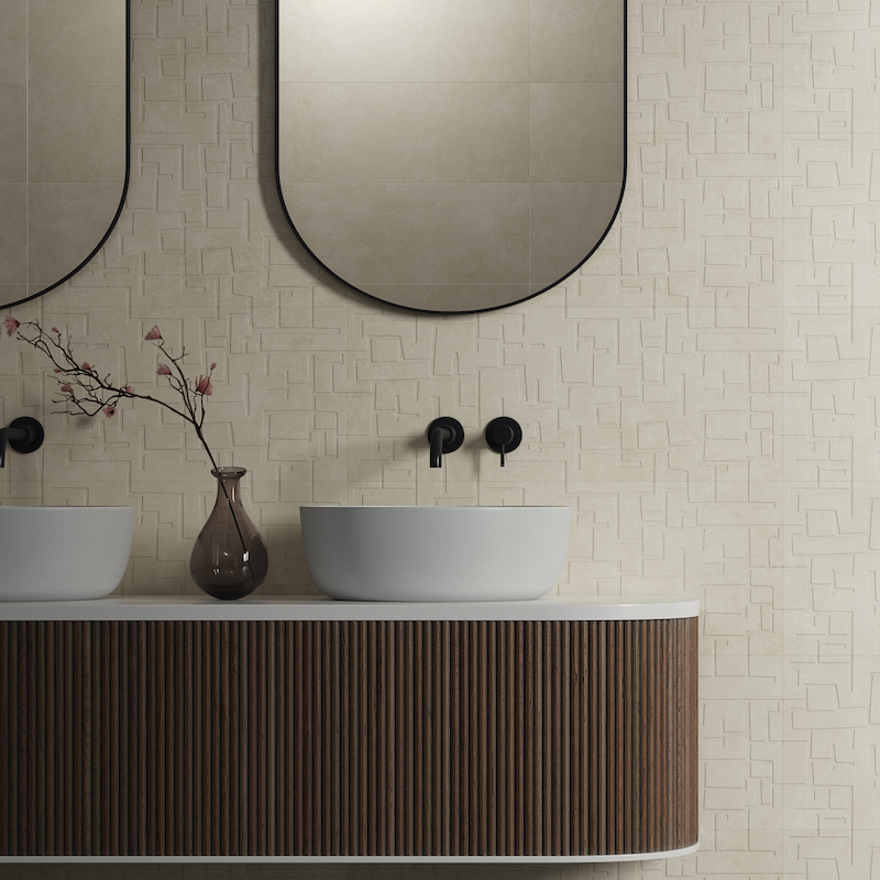Voeg een vleugje originaliteit toe aan uw muren met de Lisbon Relief 30x75 cm tegel. Deze gerectificeerde wandtegel heeft een opvallend reliëfoppervlak, dat doet denken aan een elegant en subtiel labyrintpatroon. Elke tegel vangt het licht anders, waardoor verfijnde schaduweffecten ontstaan die ritme en volume toevoegen aan uw ruimtes.