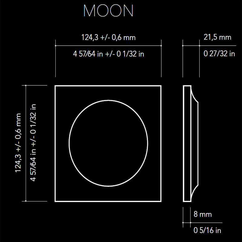 Zoekt u een tegel met een unieke vorm? Kies dan voor het MOON-model in wit of matzwart, met een afmeting van 12,5 x 12,5 cm. Deze tegel voegt een vleugje moderniteit toe aan uw kamer. Het reliëf garandeert helderheid dankzij de rondingen die het licht aantrekken.