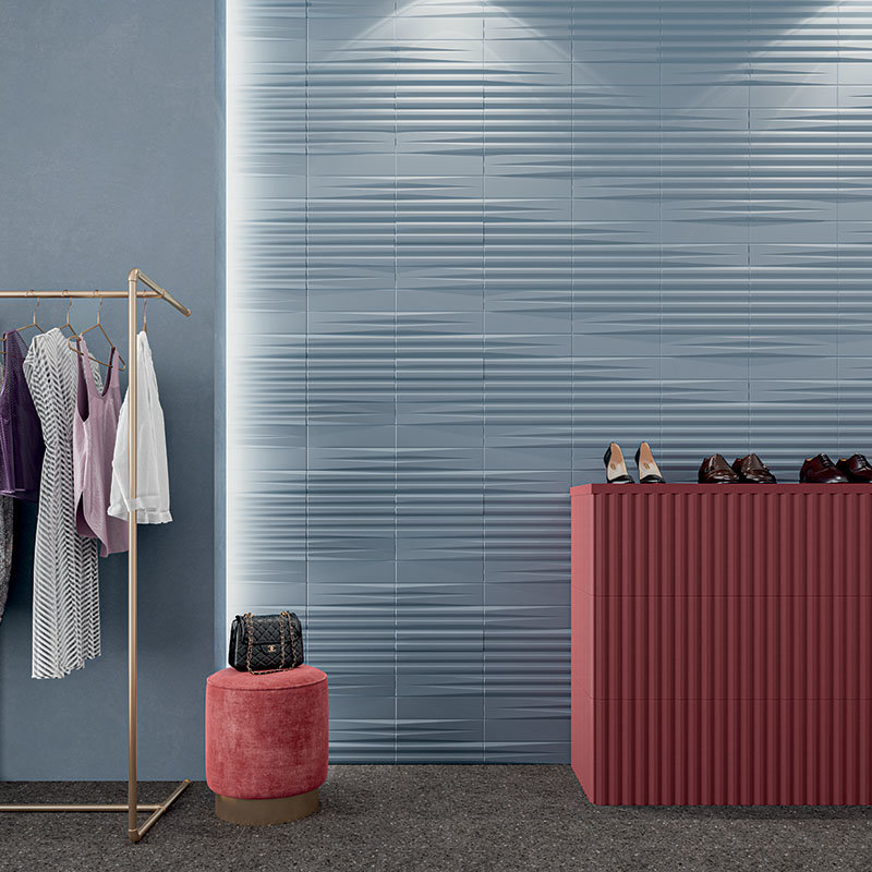 Breng frisheid en originaliteit in uw interieur met de Stripes Sky Mat blauwe 3D-tegels van Wow Design.