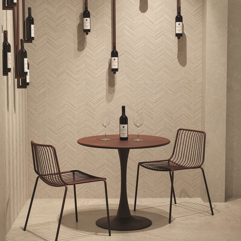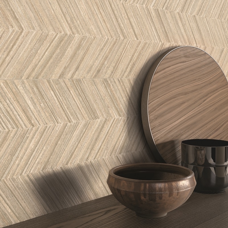 Het royale formaat van de Unique Bourgogne Pointes-collectie maakt een dramatische installatie mogelijk door het visuele ritme van het visgraatpatroon te accentueren. Deze wandafwerking is ideaal voor het creëren van krachtige decoratieve accenten in badkamers, keukens of andere woonruimtes en voegt een fascinerende textuur en diepte toe.