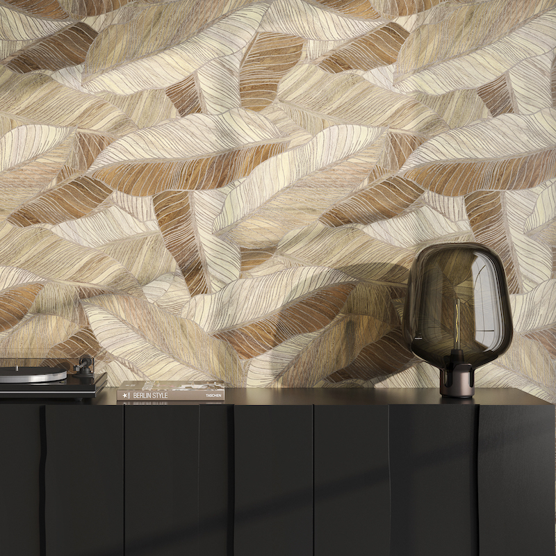 Studio Litter houten tegels 60x120 cm, matte en gerectificeerde afwerking. Bruine tinten met gouden accenten, elegant verouderd houteffect, ideaal voor warme en verfijnde interieurs.