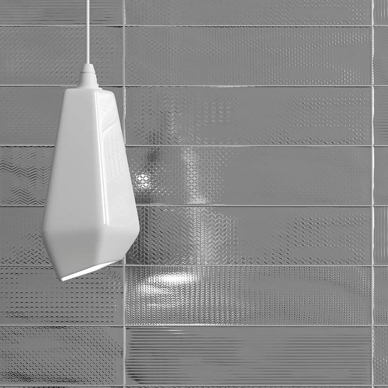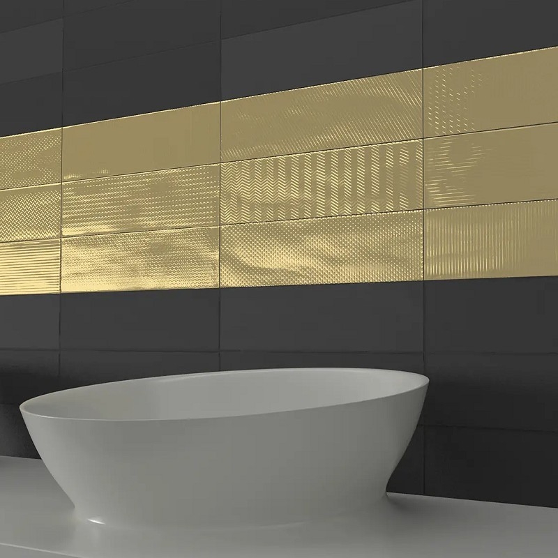 Ontdek de Gradient Décor-collectie, een tegel in de vorm van een baksteen, verkrijgbaar in twee originele kleuren: goud en zilver, perfect voor het creëren van een glamoureuze sfeer.