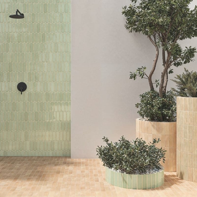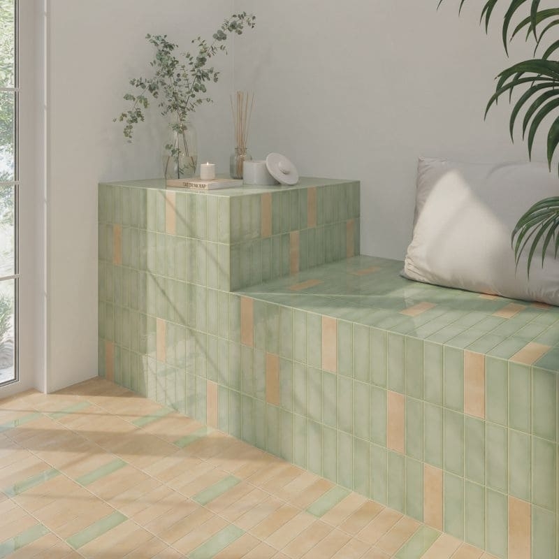 De Casablanca-tegel is verkrijgbaar in twee formaten van 5 x 15 cm: een rechthoekige versie (CB en CB Comb). De collectie biedt zeven ultraglanzende kleuren en een matte Adobe-tint, met een natuurlijke charme en terracotta-uitstraling. Sommige varianten zijn effen, terwijl de Comb-versie speelt met contrasten door de matte Adobe-kleur af te wisselen met glanzende tinten, waardoor een subtiel, grafisch patroon ontstaat.