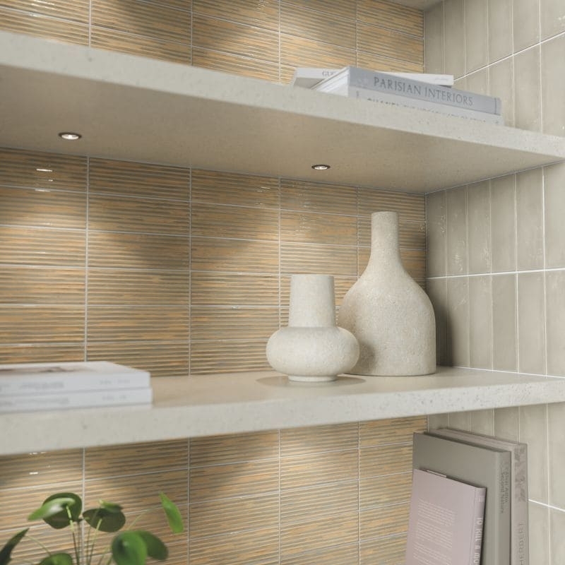 Kam is een ideale keuze om warmte, textuur en karakter toe te voegen aan muren, zowel in een badkamer, keuken als commerciële ruimte.