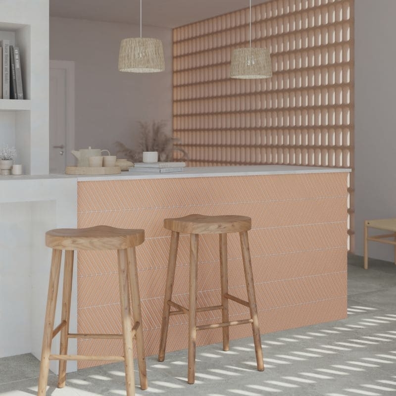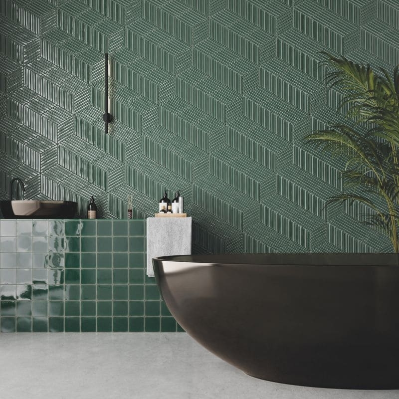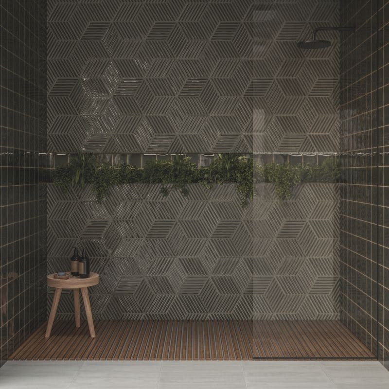 Spike Bars tegels zijn een moderne, grafische wandbekleding die perfect is om karakter toe te voegen aan uw interieur. Hun ruitvorm en schuine reliëf creëren een uniek, volumineus effect dat licht vangt en oppervlakken energie geeft.