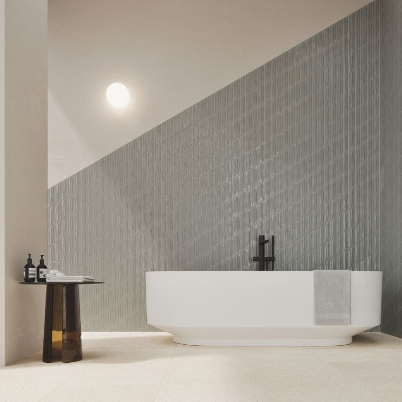 Spike Bars tegels hebben grafische diagonalen en een uniek formaat van 15 x 25,9 cm voor een dynamische look. De collectie is verkrijgbaar in frisse kleuren zoals Talk, Varen, Diepwit en andere, met matte en glanzende afwerkingen.
