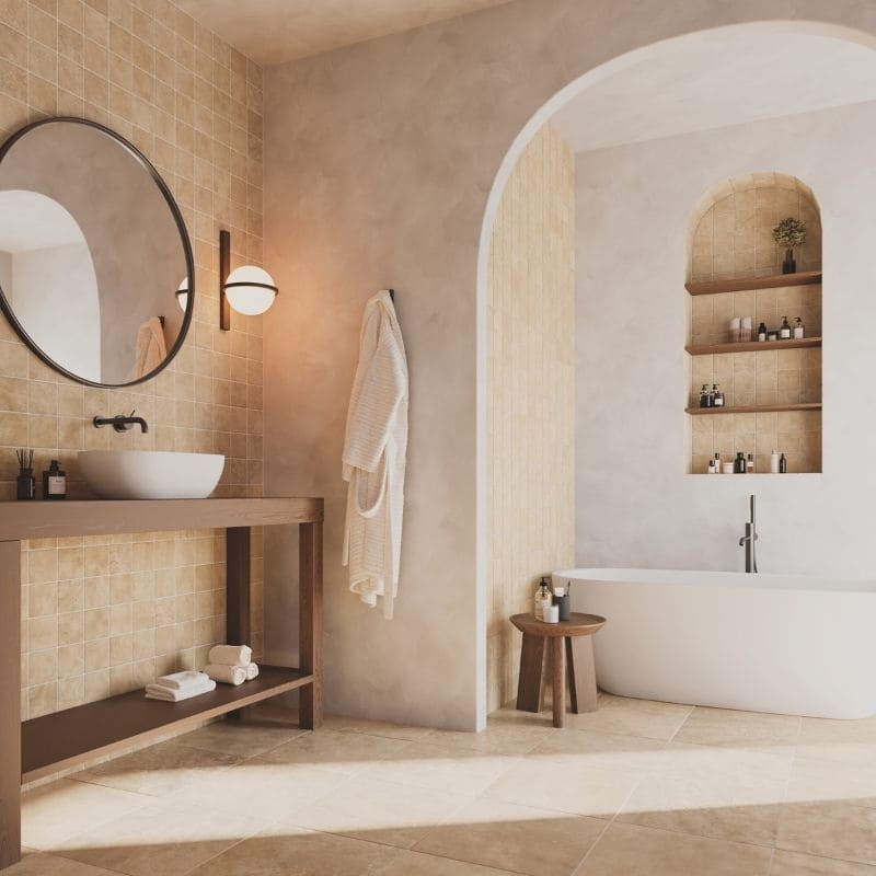 Deze tegels zijn ideaal voor vloeren of wanden met een sterke persoonlijkheid en creëren een verfijnde en tijdloze sfeer.