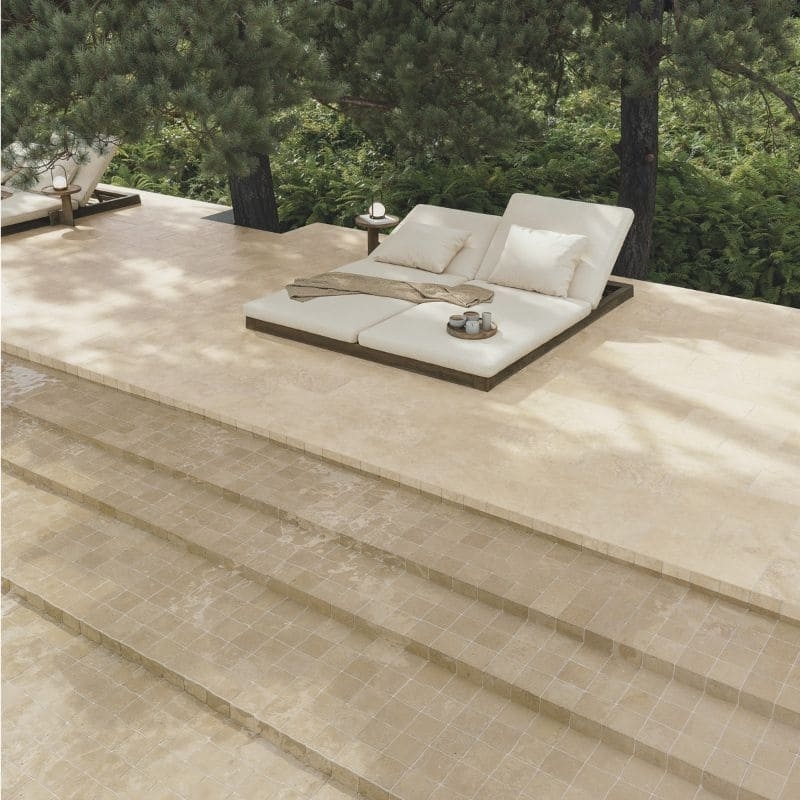 Cross Cut onthult de ruwe schoonheid van de steen dankzij een loodrechte snede die een unieke grafische textuur creëert, die moderniteit, elegantie en natuurlijke harmonie in elke ruimte combineert.