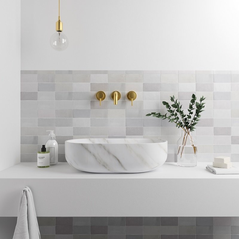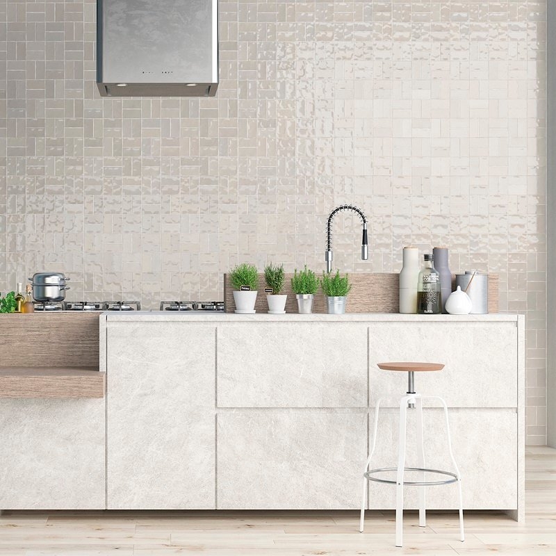 Marokkaanse zellige-look wandtegels Fez verkrijgbaar in 11 kleuren en 2 afwerkingen: glanzend en mat. Afmetingen: 6,2 x 12,5 cm.