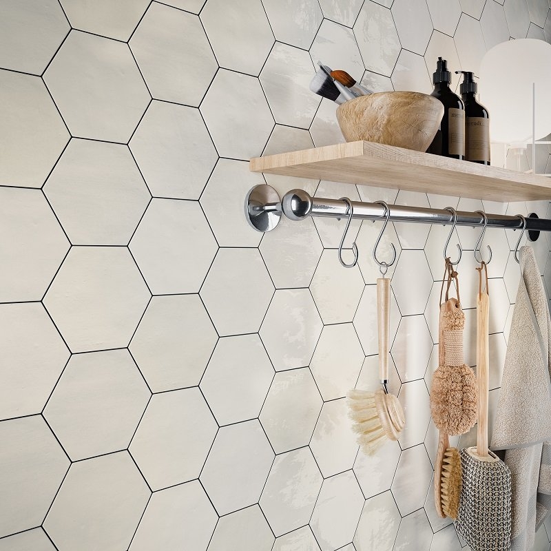Durf uw muren te vernieuwen met Zellige Hexagonale witte tegels, verkrijgbaar in 8 kleuren.