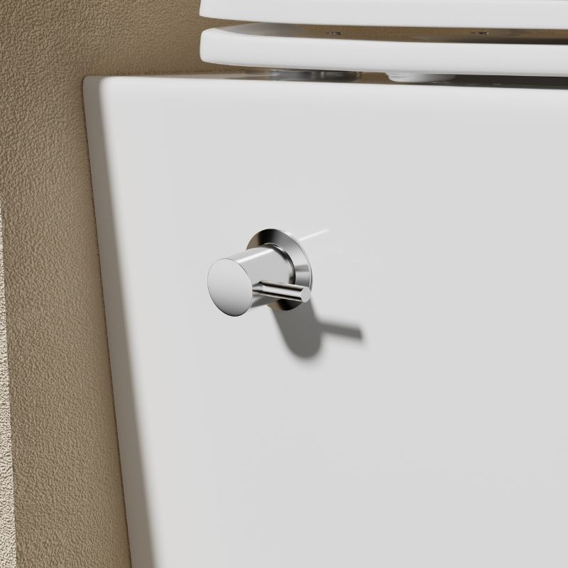 Gemaakt van antibacterieel keramiek van klasse A, is de pot voorzien van een Thermodur-zitting met softclose-mechanisme, wat zorgt voor een stille en zachte sluiting. Bovendien heeft de binnenpot geen rand, wat de groei van bacteriën voorkomt.