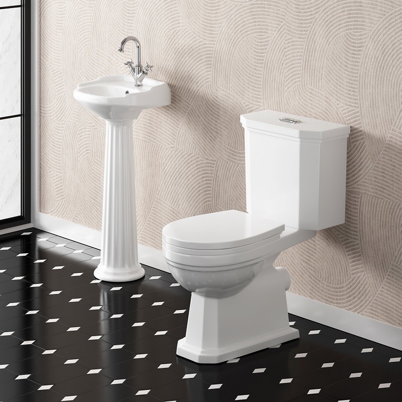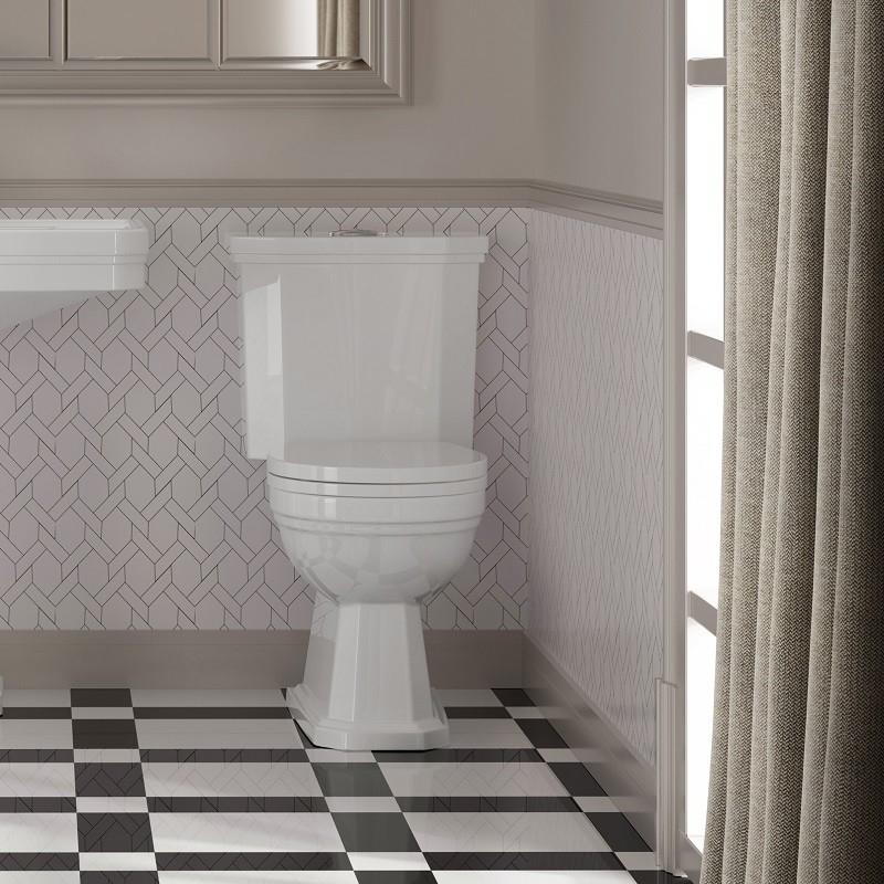 Het Renaissance toilet is gemaakt van keramiek van topkwaliteit met een glanzend witte glazuurlaag die antibacteriële en antikalkeigenschappen biedt. Het toilet combineert de nieuwste keramische technologie met een vintage charme. Deze toiletten zijn duurzamer dan porselein en gaan jarenlang mee.