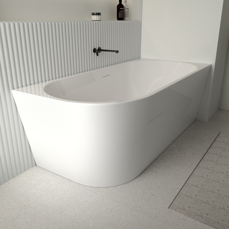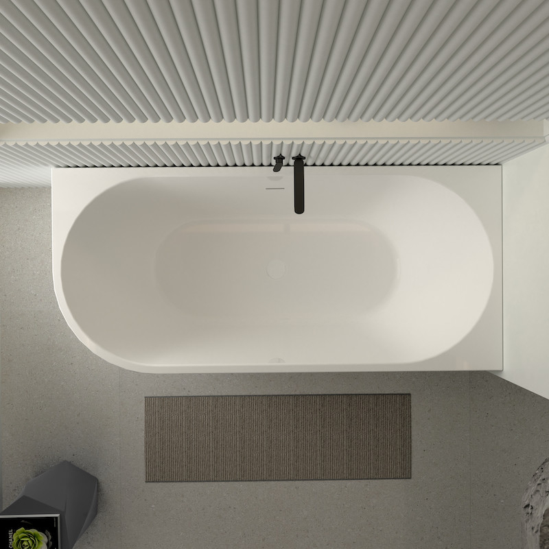 Transformez votre salle de bain en un havre de luxe avec la baignoire semi-îlot Angolo 170 cm, une solution astucieuse pour les espaces restreints.