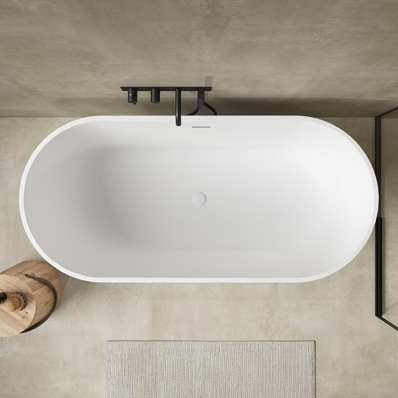 Meublez votre salle de bains et optez pour cette baignoire îlot cosy aux lignes douces et épurées. Sa forme ovale épouse parfaitement les courbes du corps et s'adapte à la morphologie de chacun pour une plus grande détente.
