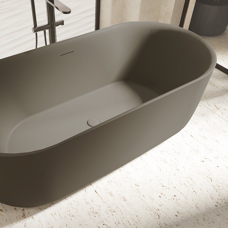Grâce à son trop-plein discret et à son capot de vidage parfaitement assorti à la couleur de la baignoire, Terraé offre une grande liberté de choix pour la robinetterie. Contrairement aux baignoires îlot équipées d’accessoires chromés imposés, elle permet d’opter librement pour un robinet noir mat, or brossé ou toute autre finition, sans contrainte esthétique.