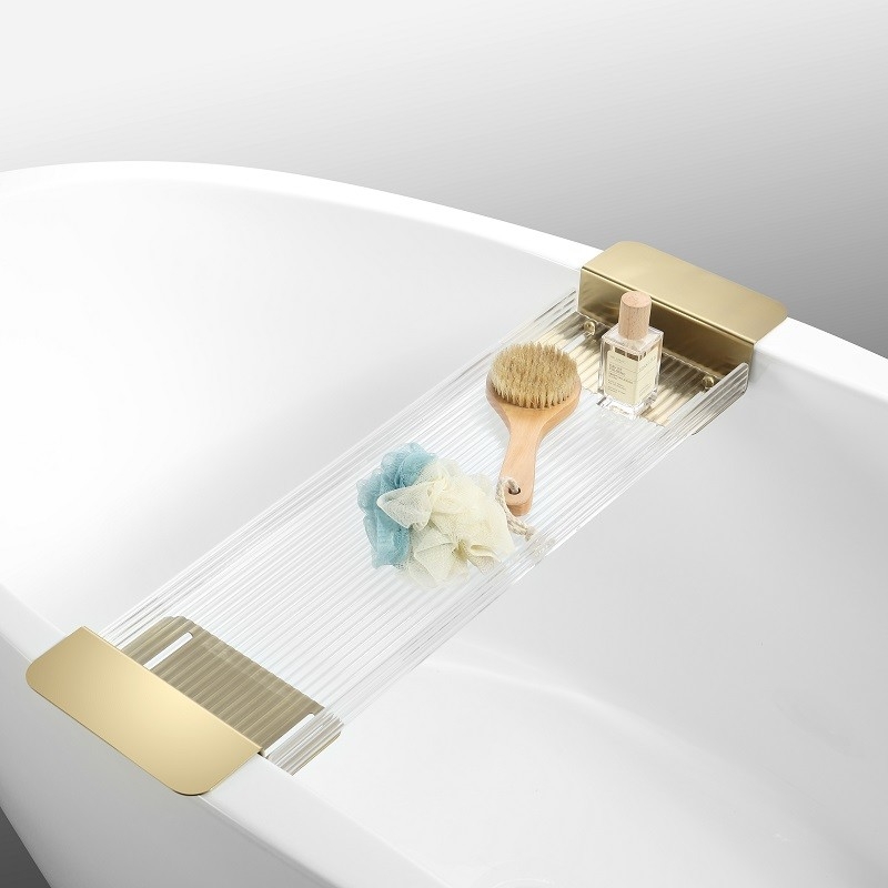 Bi matière, cette "table" pour baignoire est fabriquée en acier inoxydable et en acrylique transparent effet cannelé, il allie durabilité et élégance pour une utilisation à long terme.