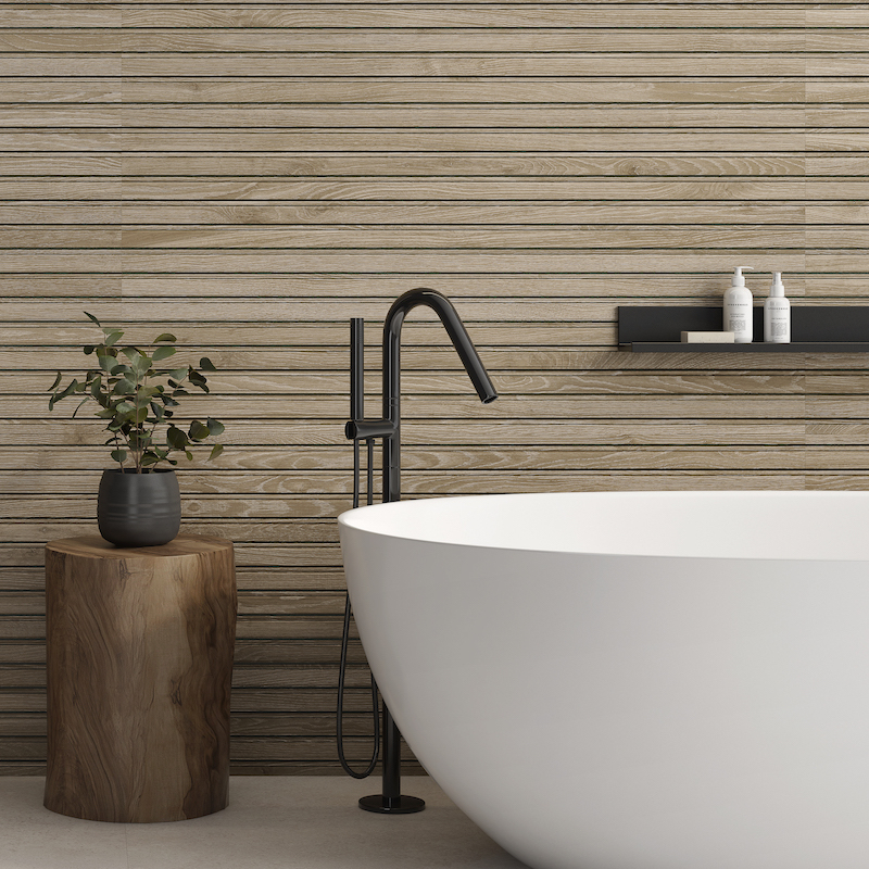 Le carrelage Studio reproduit avec élégance l’aspect du bois naturel dans un grand format 60x120 cm rectifié, idéal pour les intérieurs modernes.