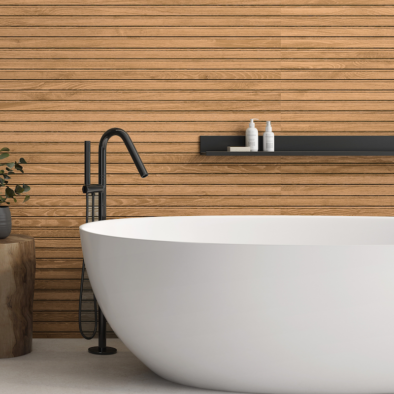 Sa finition mate et douce au toucher offre un rendu chaleureux et authentique, parfait pour les pièces de vie ou les chambres. Ce carrelage en grès cérame se décline en deux teintes bois soignées : Oak, un chêne clair naturel, et Walnut, un noyer profond et raffiné.