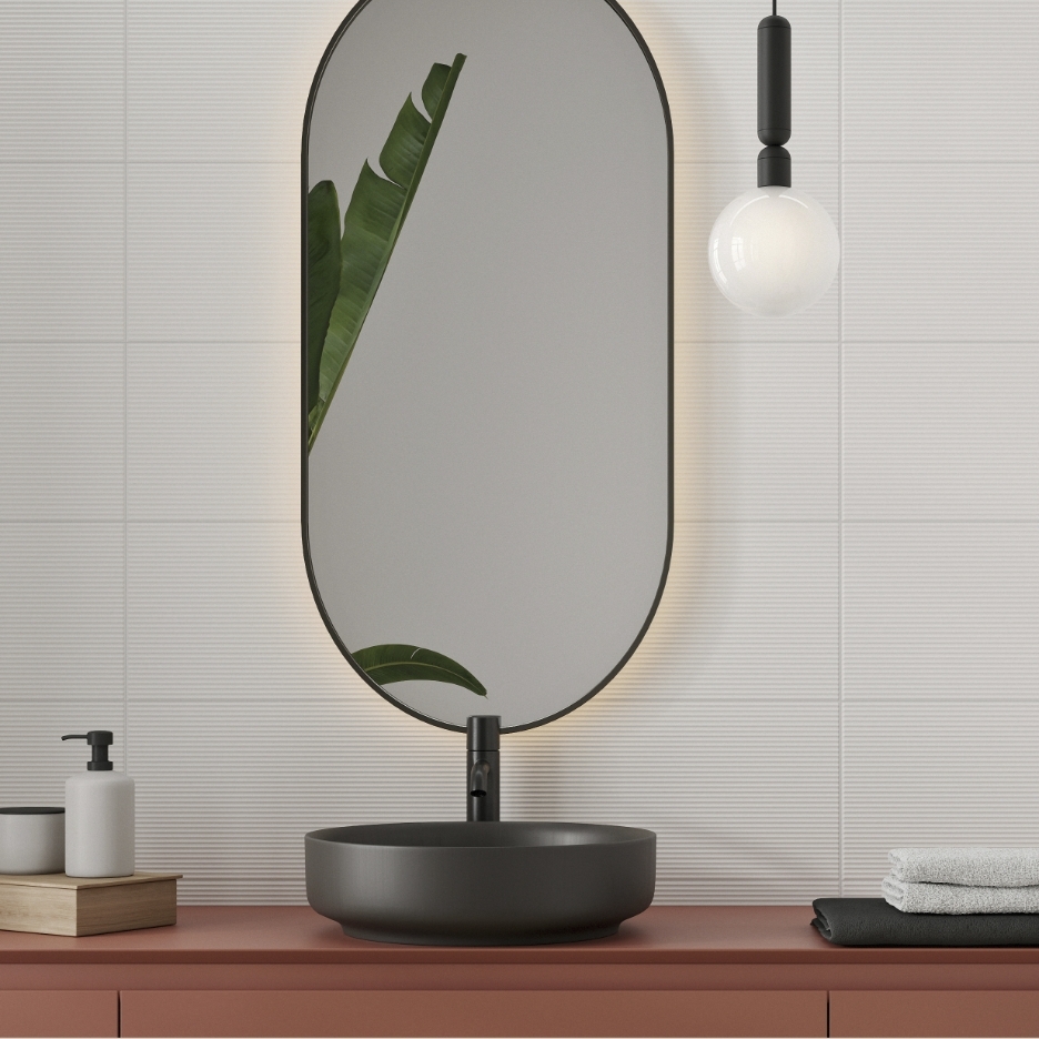 Sa couleur blanche pure illumine et agrandit visuellement les espaces. Ce carrelage mural présente un relief cannelé subtil qui ajoute du caractère et du volume à la surface, créant un jeu d’ombres délicat.