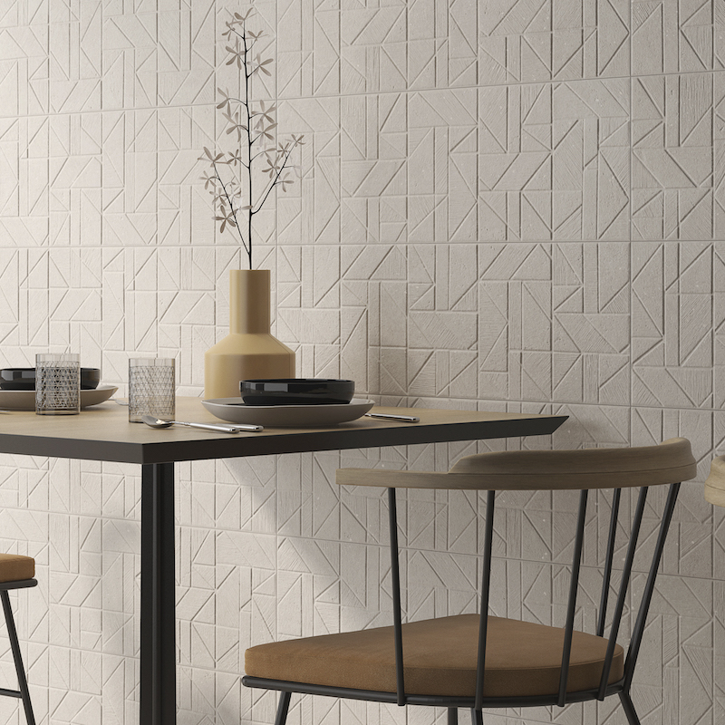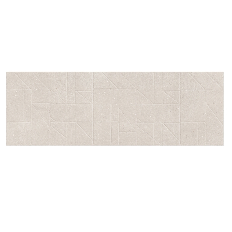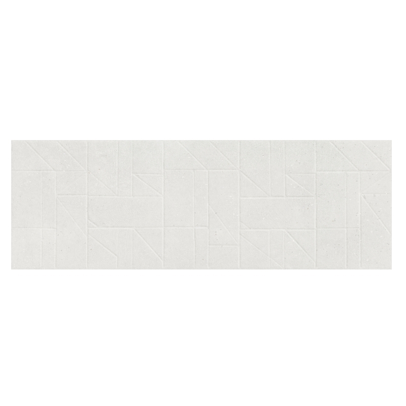 Carrelage Gravel Relief Géo 25x75 cm mat en relief, motif géométrique original, aspect ciment naturel. Disponible en White, Cream, Earth et Grey pour un style moderne et élégant.
