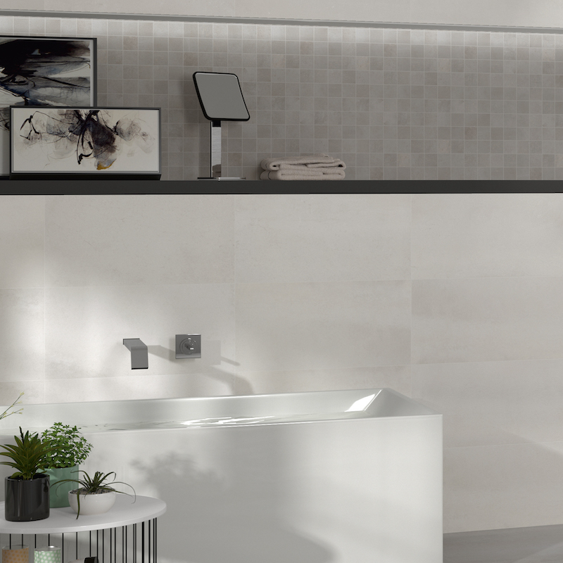 Elle existe en cinq coloris élégants : blanc, beige, steel, copper et iron. Chaque teinte révèle une variation de tons qui donne du caractère au mur, tout en restant douce à l’œil. Grâce à ses bords rectifiés, cette faïence permet une pose à joints fins, nette et précise, pour un résultat soigné.