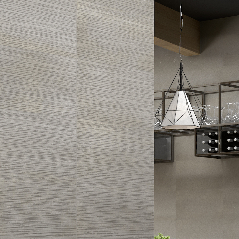 Son relief subtil apporte une profondeur unique, qui donne vie aux murs et sols en créant un jeu d’ombres et de lumière très élégant.