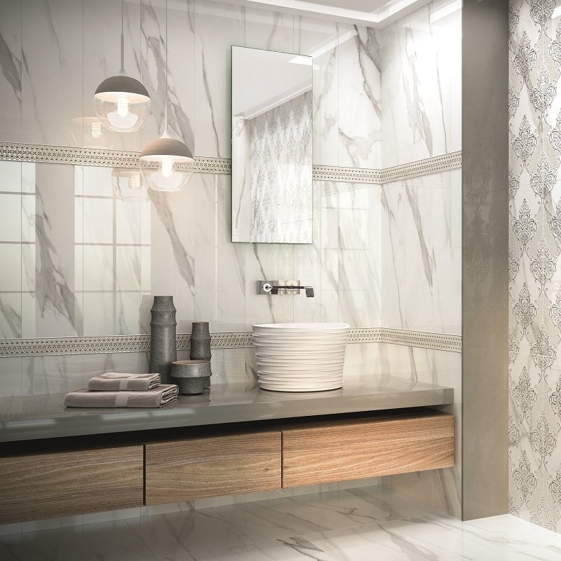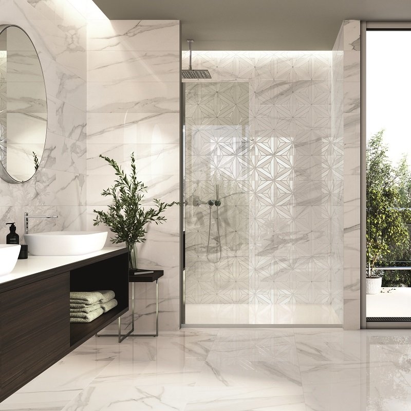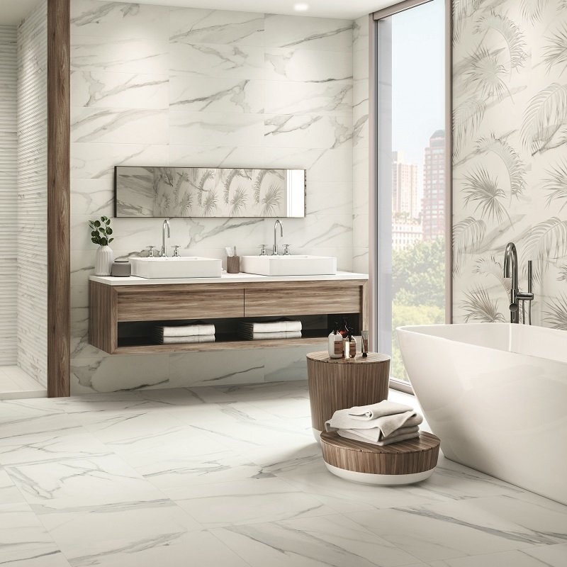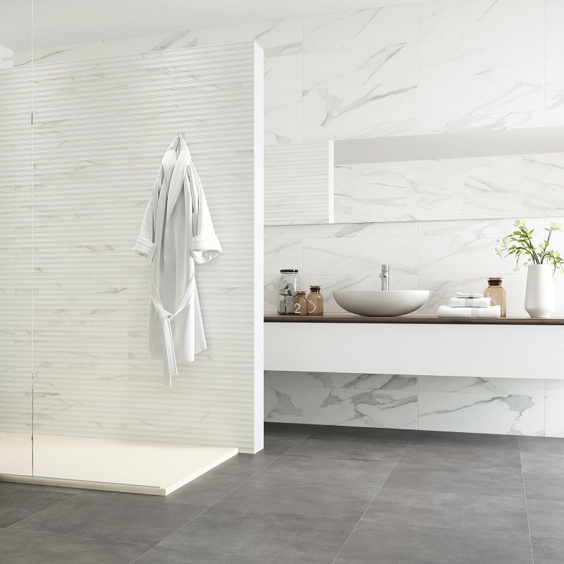 Le carrelage imitation marbre Statuary mat en pâte blanche est le compromis idéal pour ceux qui souhaitent la beauté d'un marbre luxueux avec les avantages techniques du carrelage.