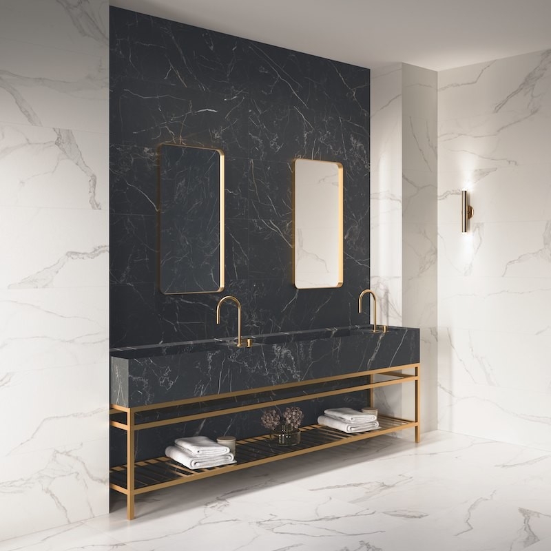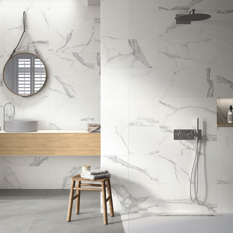 N'hésitez pas à combiner la collection Luna Blanca avec le carrelage de la même collection pour votre sol.