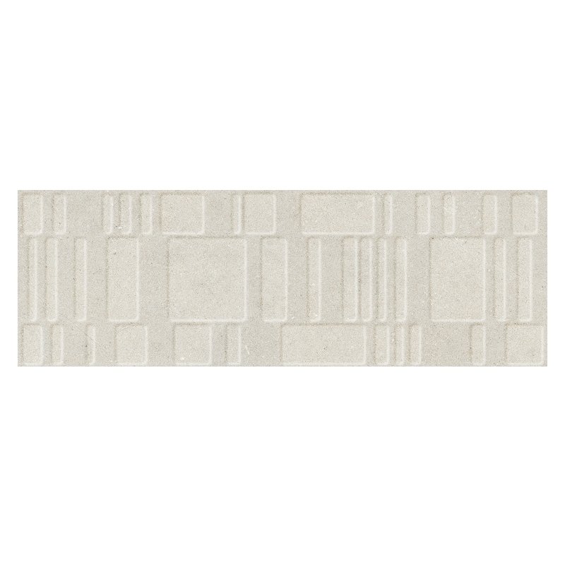 Faïence murale Khala Relief 30x90 cm, finition mate, effet pierre naturelle et relief 3D géométrique. Disponible en White, Cream, Taupe, Grey. Pose rectifiée pour un rendu élégant et moderne.